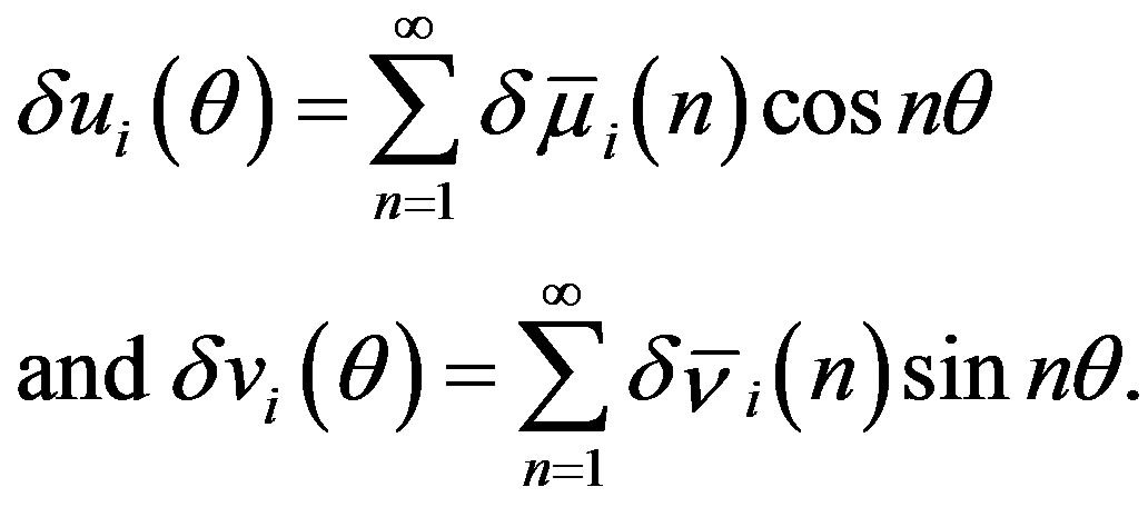 are the components of the displacement vector in the radial and circumferential directions, respectively. We can then write the following relationships: