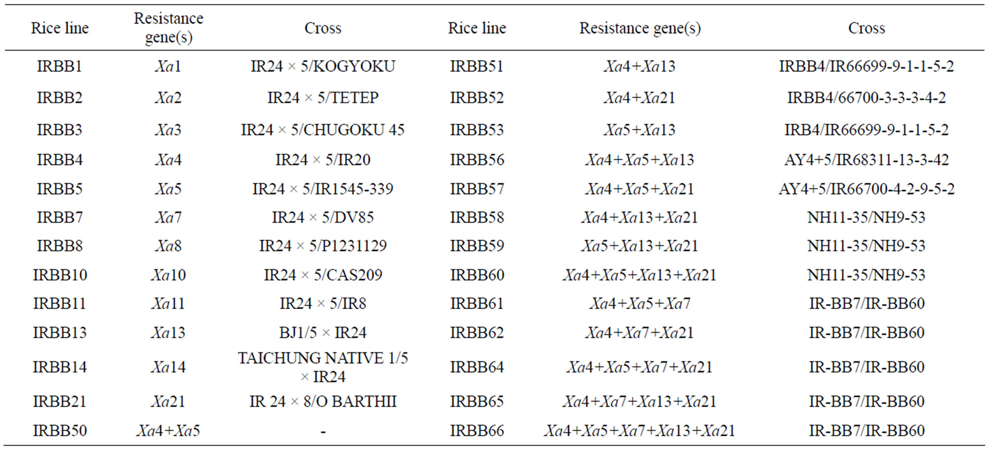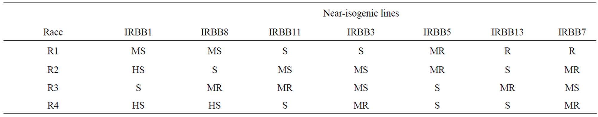 Table 2. Interaction between Xanthomonas oryzae pv. oryzae isolates and near-isogenic lines.