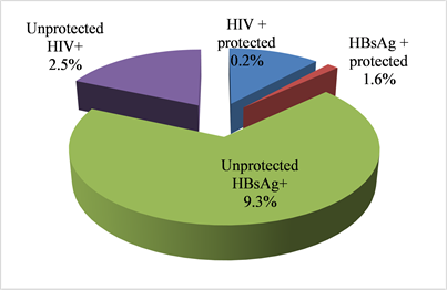Risk factors for HIV infection and HBV are shown in Figure 2. The only risk factor found was protected or unprotected sex.