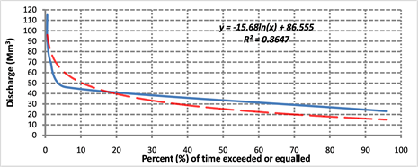 To account for the variability in the nature of the flow trend regime for the stations, Flow Durations Curves (FDC) were established based on monthly data series of the Streamflow. In this case, monthly FDCs were established for Zobe dam, Jibia, Bakolori, Goronyo (i.e. pre and post dam situations). In addition to the FDCs, to be able to properly understand the flow characteristics for effective management of the reservoirs considering demand and supply regime, appropriate regression models were developed. The regression models were established based on the sole objective of simulating the upper bound of the established FDCs in terms of percentage exceedance levels.