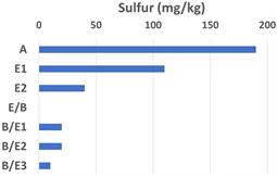 Across all three pedons, S exhibits similar soil profile distribution to that of P. The padus pedons show a greater partitioning in the upper-most A and E horizons, a feature attributed to biocycling. Sulfur enricment below the lithologic