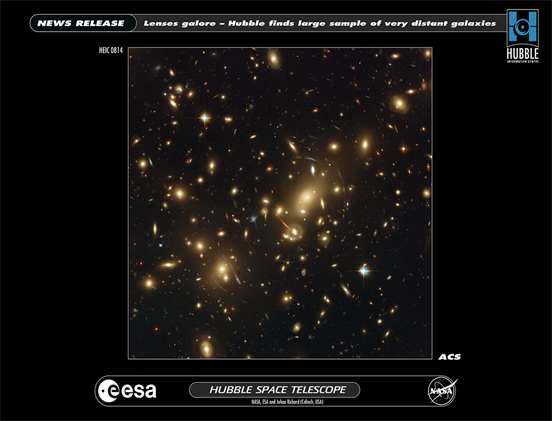 Figure 3. Gravitational Lensing observation in the galaxy cluster Abell 2218 taken by the Hubble Space Telescope.