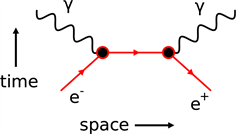 CRT is a symmetry where C (charge conjugation) stands for matter or antimatter charge, R stands for rotation clockwise or counterclockwise, and T stands for time moving forward or backward. According to the Feynman diagram the electron-positron annihilation process leads to the creation of two photons as shown in Figure 5.