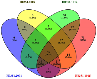 The venn diagram (refer to Figure 2) shows the common genes between, as well as the genes unique to, the gene lists of the four individual donors. 76 (29.3%) genes were identified to be commonly expressed in the temporal lobe amongst all four donors.