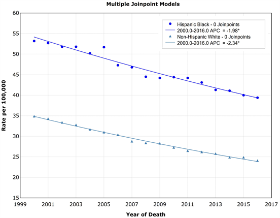 yrs showed a significant decreasing rate from 2000-2016 for both races (Figure 3, Table 2).