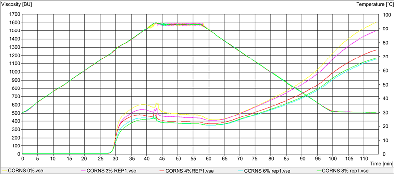 Starch is the main source of energy in the human diet and the most abundant polysaccharides, mainly obtained from cereals and tubers. Starch is gaining biggest attention as compared to other carbohydrate polymers and the abundant production of starch has a bright future in sustainable food supply to the world [1]. Starches with industrial significance are from corn, potato, cassava, wheat and rice [2]. However, studies have indicated that native corn and cassava starches generally have limited functionality due to low shear stress resistance, susceptibility to thermal degradation, high retrogradation rate and syneresis. As a consequence, this has reduced corn and cassava starches applications in food systems and industries. Therefore, to improve the functionality of native starches, physical, chemical, enzymatic methods are used. However, due to market demand for economical, safe and natural food ingredients, different types of hydrocolloids are being extensively used to modify properties of different native starches such as pasting and texture [3].