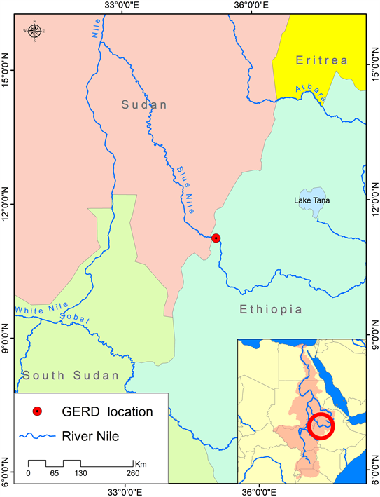 In 2011, Ethiopia began to construct the Grand Ethiopian Renaissance Dam (GERD) along the Blue Nile River (Figure 1), which is the largest tributary of the Nile River contributing about 60% of the annual water budget of the flows received at Aswan Dam (EL Bastawesy, 2015). GERD is expected to be the largest hydroelectric power generation facility in Africa and the fifth largest in the world (Wheeler et al., 2020). GERD is planned to generate 5.1 - 6.4 gigawatts of energy providing power to sixty-five million Ethiopians who currently lack access to regular power (Booth, 2020). The minimum operating level of the reservoir water is planned to be 640 m above mean sea level (Mulat & Moges, 2014).