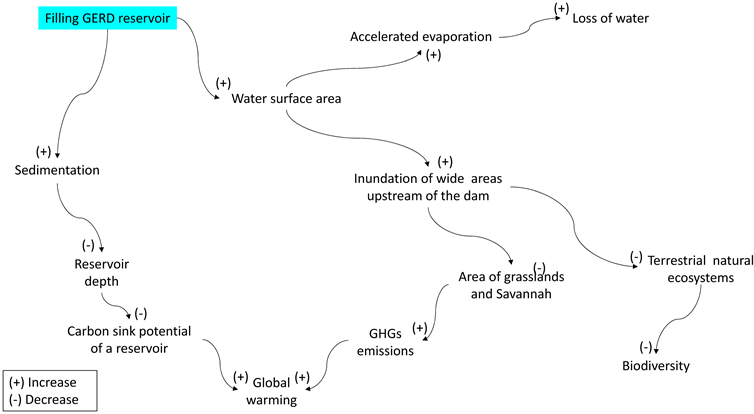 Figure 5. Schematic diagram of potential environmental impacts of GERD reservoir.