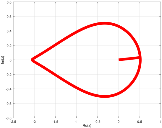 Figure 1. Region of absolute stability of the Two-Step Butcher’s scheme.
