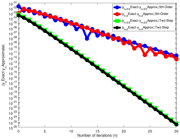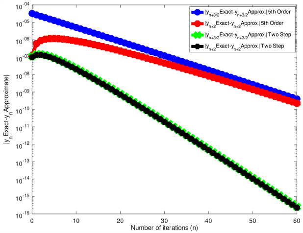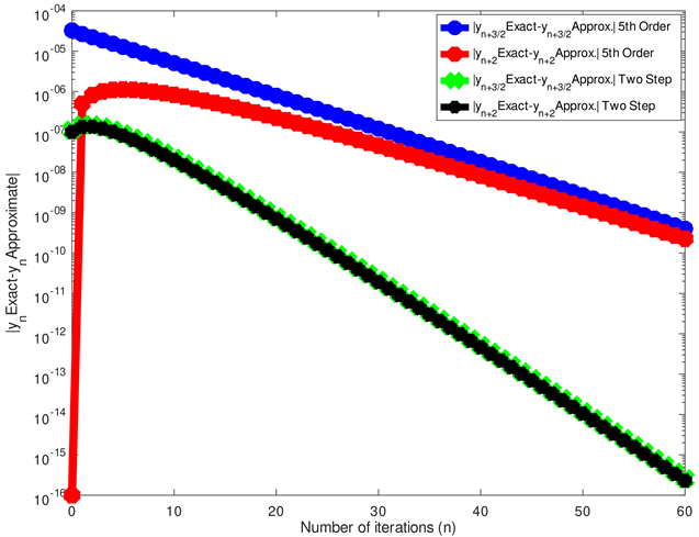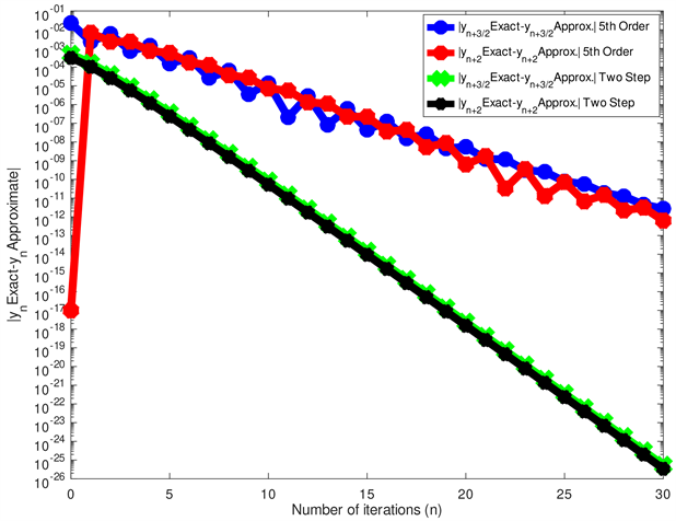 versus the values of n on a semilogy scale obtained from using the Two-Step Butcher’s scheme.