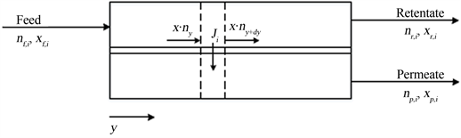 Figure 6. Graphical representation of the mass balance over the membrane module.