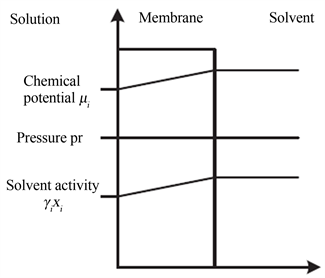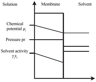 Figure 10. Schematic of an osmotic equilibrium solution-diffusion membrane [9].