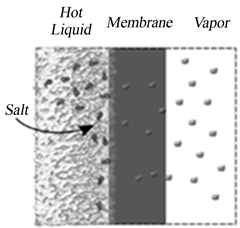 With the process of desalination, salt is incapable of being vaporized, and it will therefore not cross the membrane. Accordingly, water vapor is the only compound which transfers across the membrane, like with the case of a porous membrane being used for membrane distillation applications. There are a few