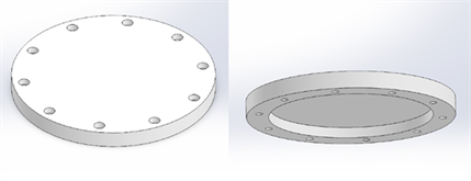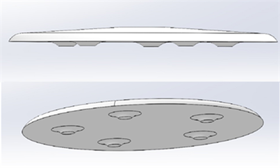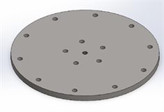 As a car passes over the asphalt where the harvester is located beneath, it will compress the top plate shown in Figure 5. The top plate is constructed of polycarbonate because of its lightweight and high strength properties. Bolts will be guided through the holes on the top plate and fastened to the base plate shown in Figure 6(a). Bolts will have a shoulder on them to allow the top plate to float.