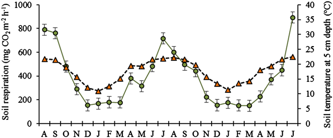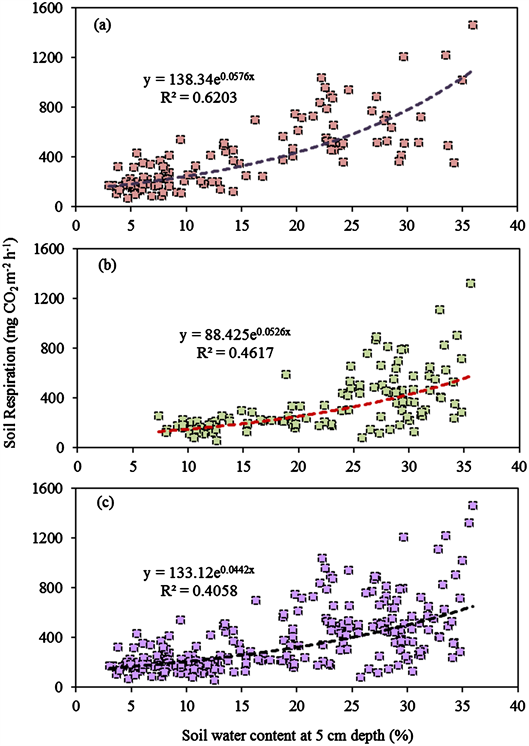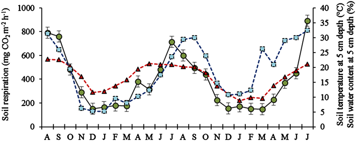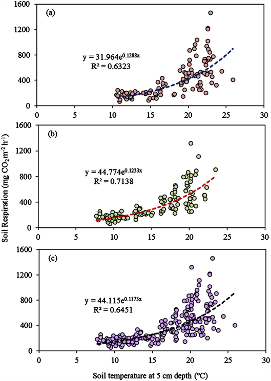 Li, H. J., Yan, J. X., Yue, X. F., & Wang, M. B. (2008). Significance of Soil Temperature and Moisture for Soil Respiration in a Chinese Mountain Area. Agricultural and Forest Meteorology, 148, 490-503. [Google Scholar] [CrossRef]