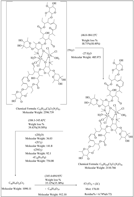 Scheme 2. Indicates steps of [Cr2(TYS)2Cl4(H2O)2]·27H2O thermal cracking.