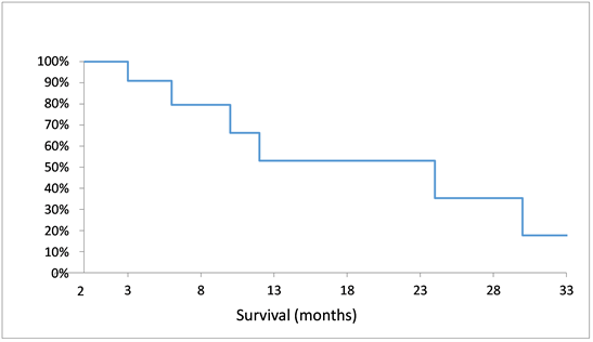 Figure 2. Kaplan Meyer curve showing the overall survival of the patients.