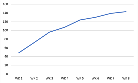 Figure 3. Changes in the Mean Weight of the Rats in the Control Group during the period of the study.