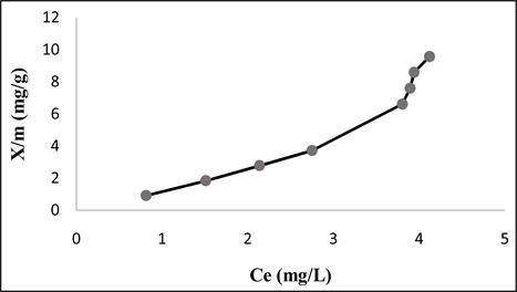 Figure 9. Methyl violet adsorption isotherm (Mabs = 1 g, C0 = 50 mg/L, V = 100 mL and T = 27˚C).
