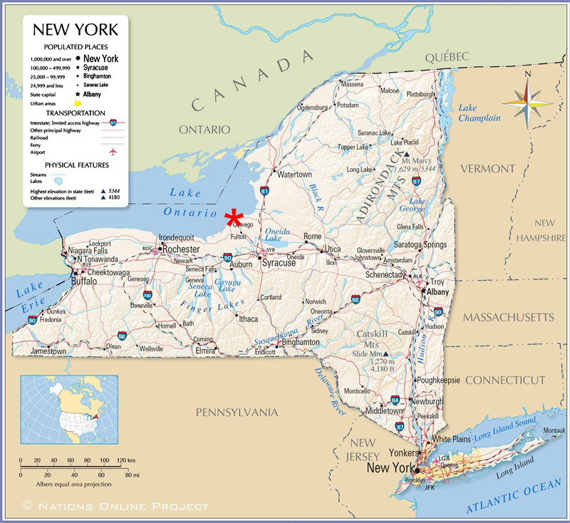 The sediment sample was collected from the vicinity of the Nine Mile Point Reactor located in the town of Scriba, approximately five miles northeast of Oswego, New York (Figure 2). This is a sediment sample collected from the shoreline of Lake Ontario boat launch collected right where the water meets land. Distance from the reactor is ~1.44 miles E of Unit 2 with a heading of 82 deg. Depth is skimmed off the top at approximately 2 cm and sifted in the field to remove large rocks. The sample was kept in a cooler and brought to the lab where the sample was kept at 105˚C overnight to dry and gain constant weight. The sample was then weighed and transferred into 800 ML Marinelli beaker up to the top and sealed with Phenoseal Vinyl Adhesive Caulk (PHENOSEAL, Baltimore, MD 21224) and black electric tape (S-17841; Uline, Pleasant Prairie, WI
