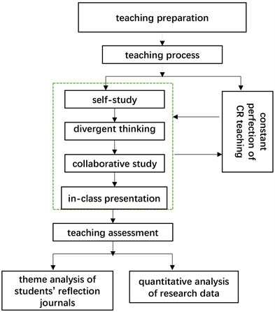 2) Teaching process. With the help of Ellis’s (1991) , Willis and Willis’ (2007) procedure design for CR teaching, the researcher designs teaching procedure to elevate students’ consciousness from the 5 aspects talked in 3.1. Every aspect follows similar procedure, including teaching activities like self-study, divergent thinking, collaborative study, group presentation, etc. (for details, please see Figure 3).