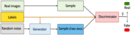 A conditional GANs are a type of GAN that takes in additional information to help the generator and discriminator learn. This information could be the class of the current image or some other property [10] . Generative models produce new instances influenced by the input data provided. Like other deep neural networks used for image creation, GANs produce images that align with the distribution of the input images [8] while CGANs incorporate two distinct networks (the generator and the discriminator) that utilize a conditional label as shown in 3 [7] . The generator within the CGAN deceives the discriminator by producing images that appear real. Conversely, the discriminator network aims to discern between genuine and generated images. The models undergo adversarial training, where a reduction in the generator’s loss correlates with an increase in the discriminator’s loss, and vice versa.