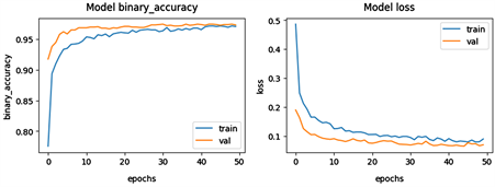Figure 13. Training and validation accuracy and loss over the epochs (Fine-tuned Xception Network).