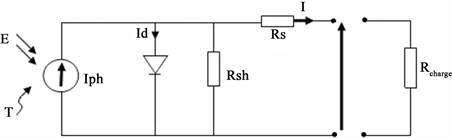 where Iph is the photocurrent, Is the saturation current of the diode, n ideality factor of the diode, K Boltzmann constant (1.38 × 10−23 J/K), q elementary load (1.602 × 10−19 C), T cell temperature (K), Rs series resistance (Ω) and Rsh shunt resistance (Ω).