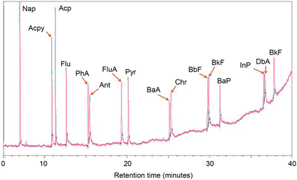 Table 2. Chromatogram peak labelling for the corresponding PAHs standards and their retention time (min).