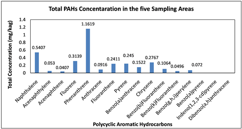 Figure 4 represents the overall total concentration levels of each of the PAHs in all the sampled locations.