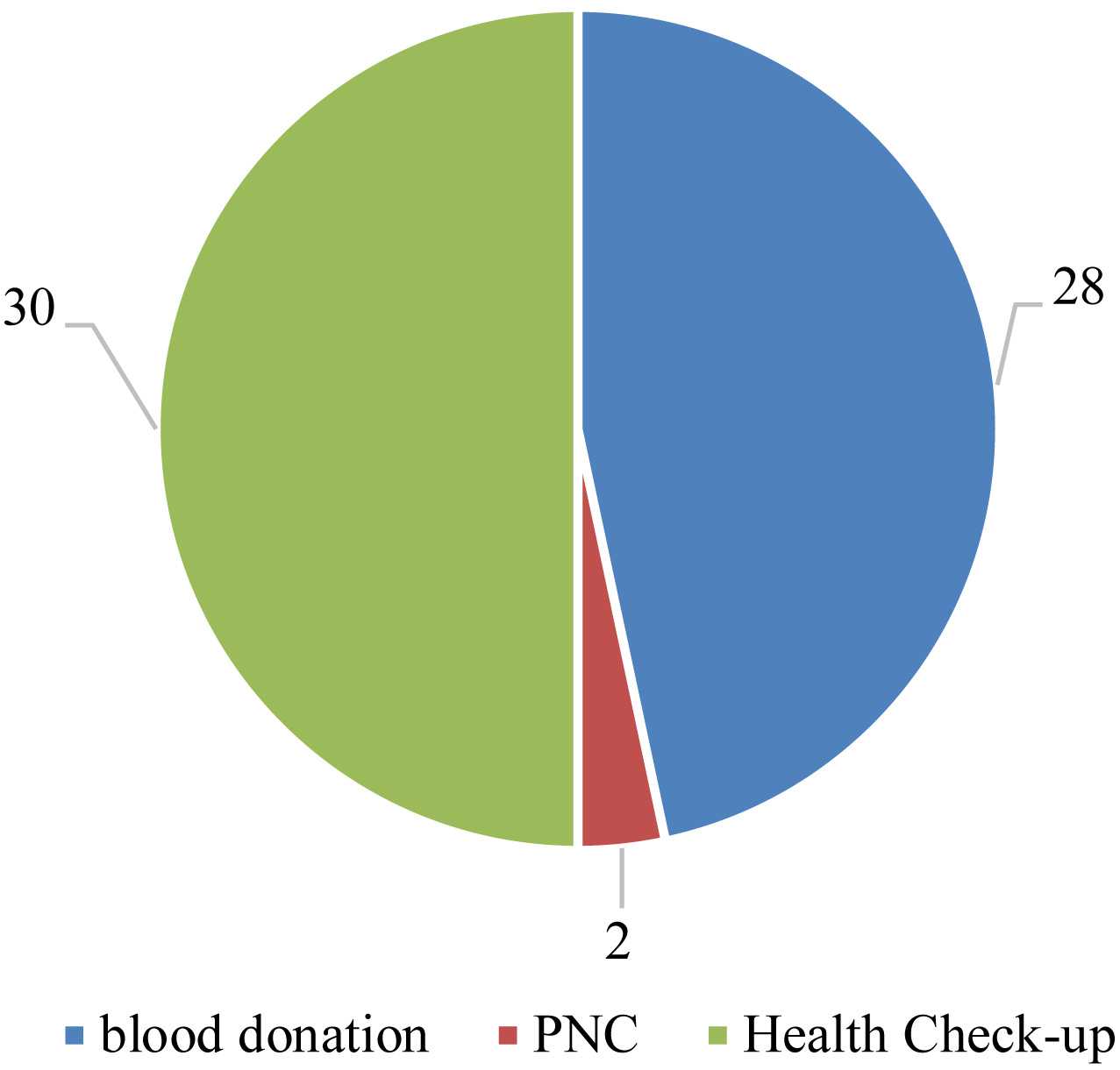 The circumstances in which HVB was discovered were the routine health check-up, followed by blood donation with 50% and 46.67% respectively (Figure 1).