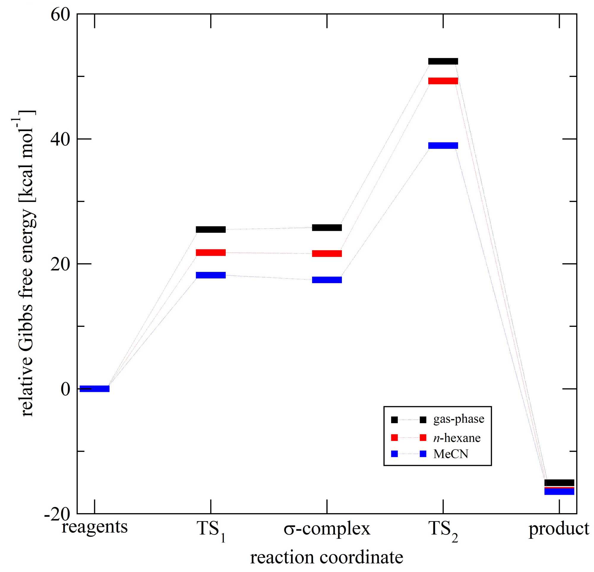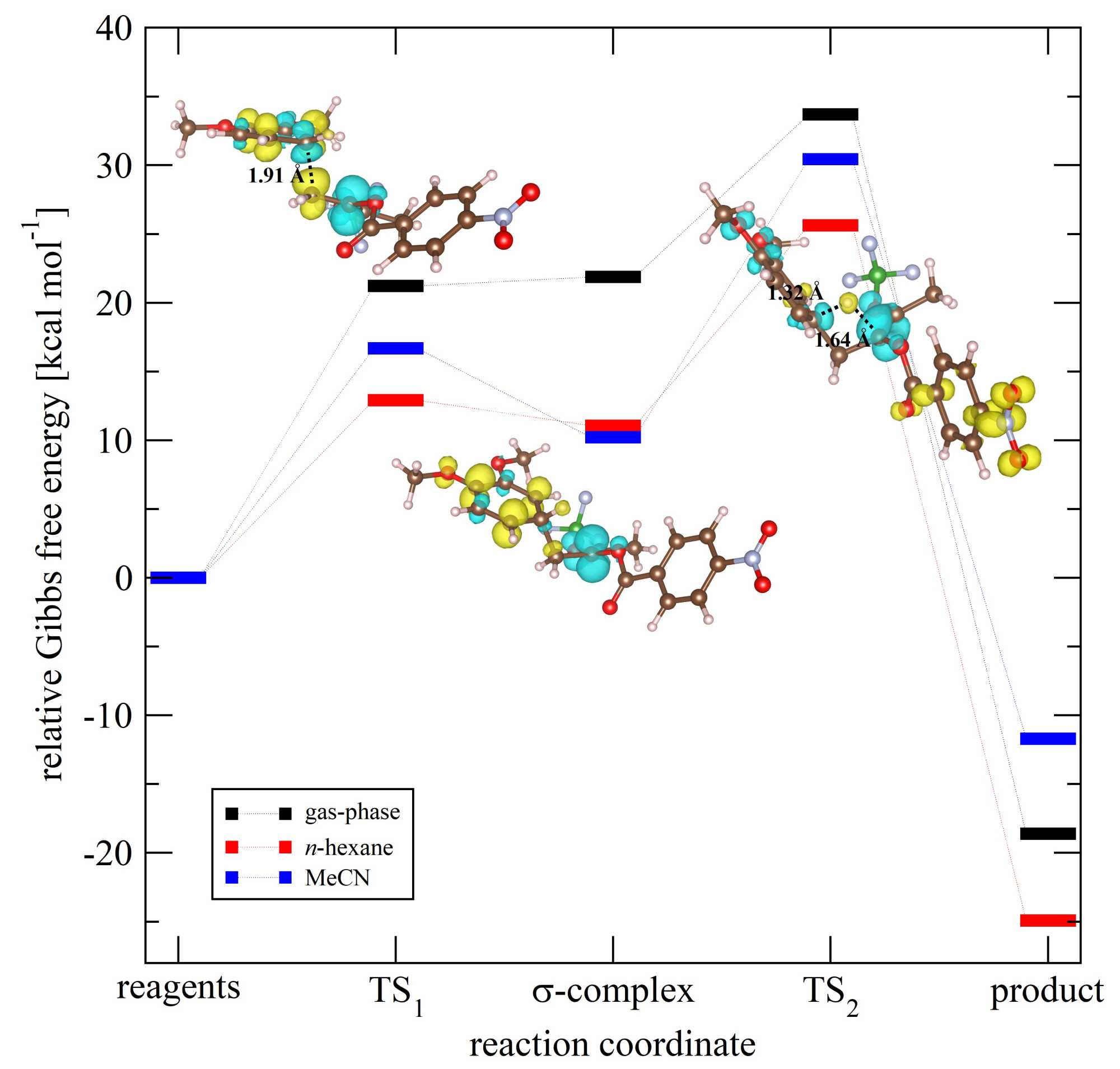 Meanwhile, reagents, intermediates, and products were verified with frequency calculations to be stable structures. To confirm that such TSs connect reagents and products, the IRC calculations were carried out at the described level of theory (see Figure S4 and Figure S5 for details). Solvent effects were considered for the implicit solvation model using the Polarizable Continuum Model (PCM) using n-hexane and acetonitrile (MeCN).