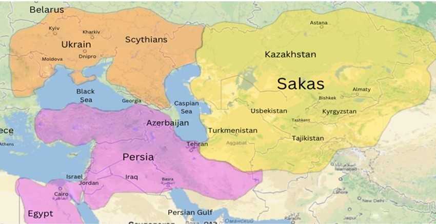 Figure 2. The Saka tribes were dispersed across Central Asia either in the 1st millennium BCE or during the 7th to 8th centuries BCE. Information about the ancient Saka can be found in the works of Herodotus.