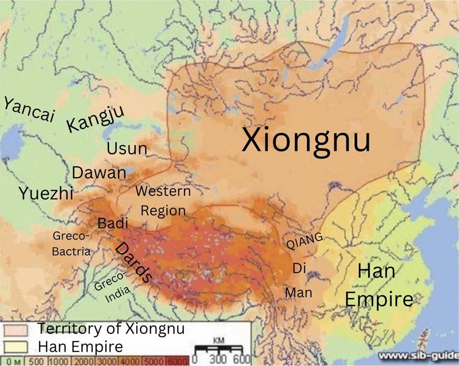 Figure 3. Central Asia around 135 BCE (according to the accounts of the traveler Zhang Qian).