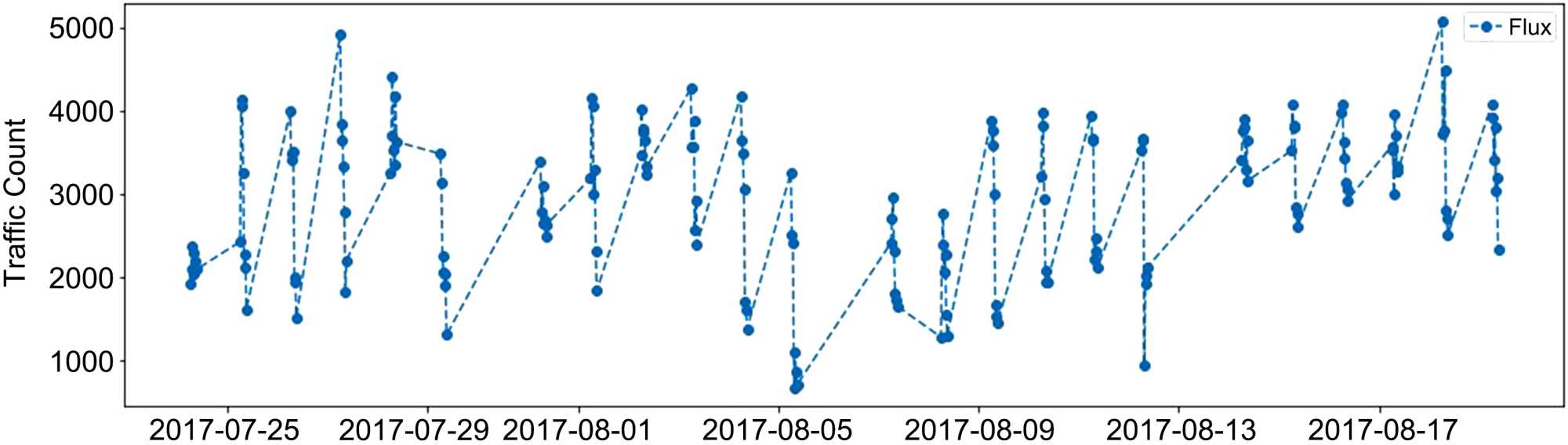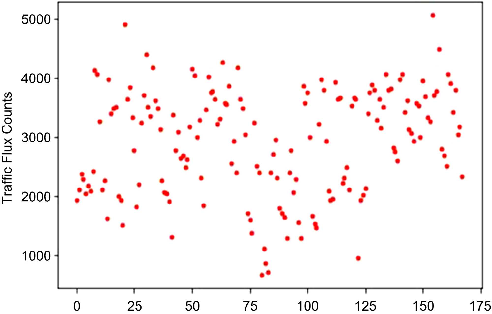 Figure 2. A plot of daily morning rush-hour traffic flux readings on M6.