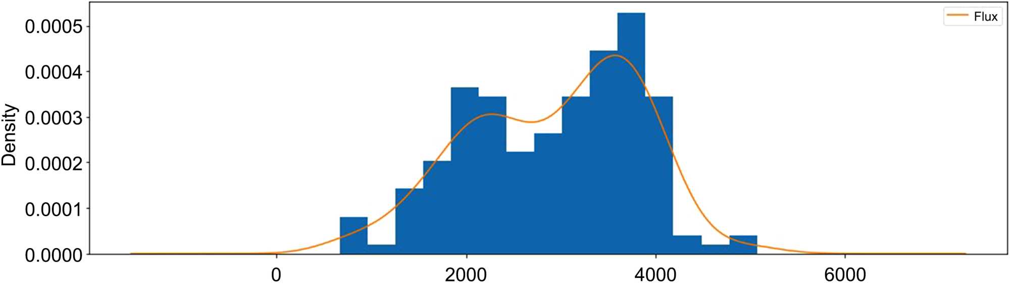 This section presents the findings of the study in the form of figures and graphs obtained from both the N6 empirical traffic data and the simulation of the model. Figure 3 gives two sets of graphs for the empirical traffic data and that of the simulated model. Figure 3(a) and Figure 3(b) are the empirical data graphs. While Figure 3(a) illustrates the line plot for the daily traffic flux during the morning hours, the illustration in Figure 3(b) displays the corresponding histogram with the kernel density. Similarly, the graphs from the model simulation are presented in Figure 3(c) and Figure 3(d) for which Figure 3(c) displays the simulated line graph. The corresponding histogram with kernel density is displayed om in Figure 3(d) for three different time step simulation runs that used initial flux size