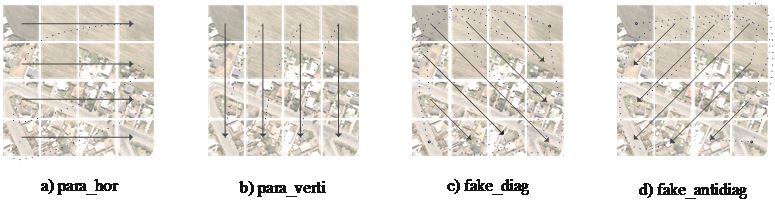 In VMamba, SS2D is a four-direction scanning mechanism designed specifically for the spatial domain, which can effectively combine spatial information. RS-Mamba further introduces a diagonal scanning approach, creating a full-directional state space, which includes scanning sequences in eight directions. These eight directions consist of four forward directions and four backward directions, with each direction requiring an S6 block to extract features. The four forward directions shows in Figure 6. Although full-directional scanning can extract rich features, it is computationally expensive and slower. To address this issue, this paper proposes a new method that combines single-direction or multi-direction scanning, aiming to reduce computational cost by using different scanning algorithm combinations. The effectiveness of this method is tested on multiple practical tasks. Through experiments on Imagenet image classification, COCO object detection, and RS-Mamba remote sensing change detection, the feature extraction ability of the new scanning algorithm is evaluated.
