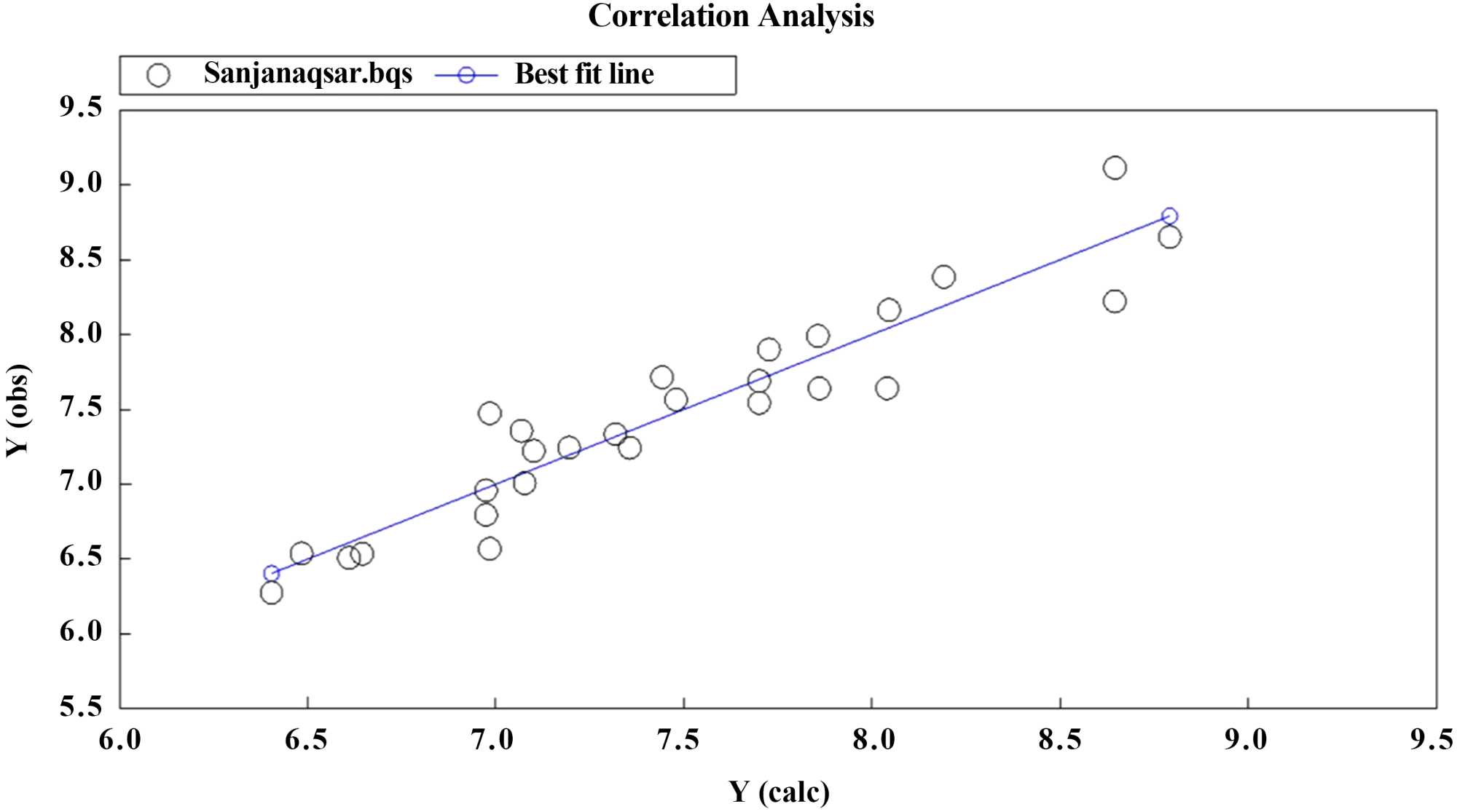 The biological activity of dataset molecules i.e., pIC50 of the dataset alongside their calculated descriptors were imported into Build QSAR spread sheet and this 2D QSAR model was developed utilizing Build QSAR software. A correlation analysis is carried out between the calculated descriptors (an independent variable, X) and biological activity (dependent variable, Y) to comprehend the relation between the two.