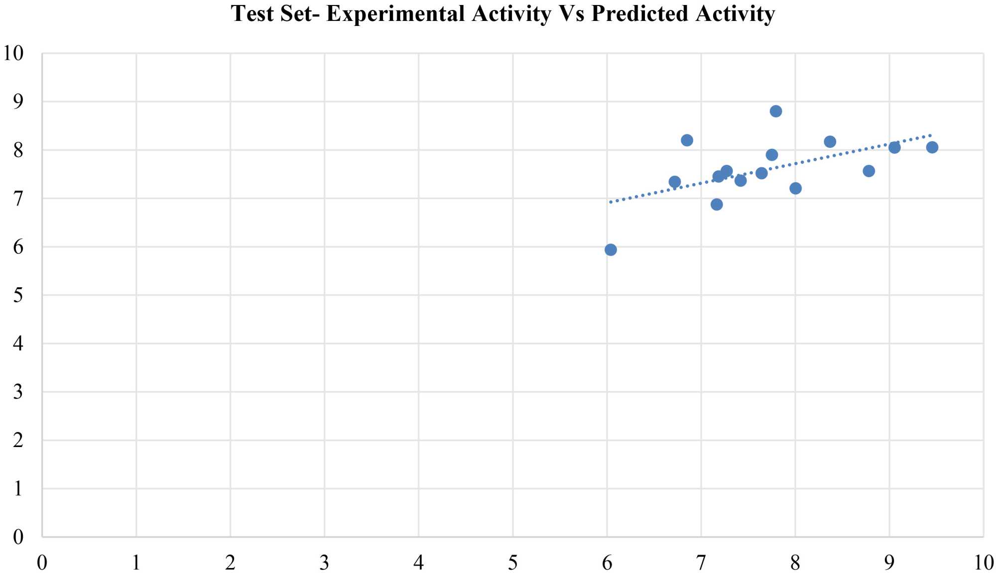 The extent to which the proposed relationship could explain the variance of biological activity is presented with R2, the coefficient of determination [37]. R2 value of the test set molecules was calculated using the formula