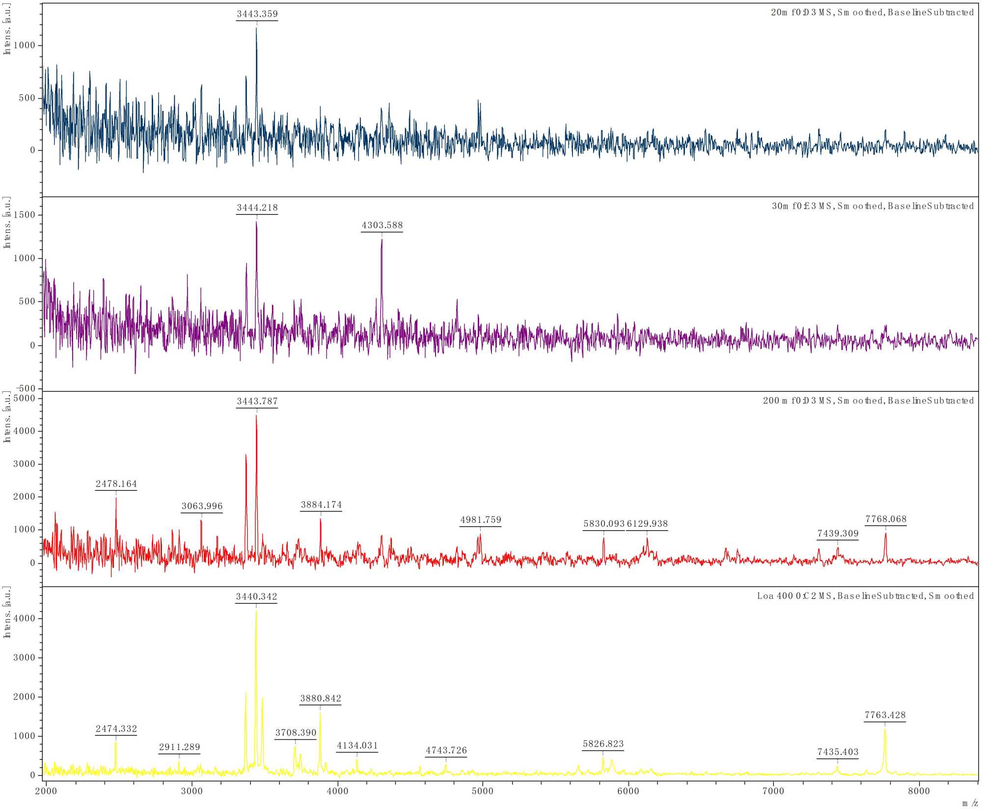 Williams, T.L., Andrzejewski, D., Lay, J.O. and Musser, S.M. (2003) Experimental Factors Affecting the Quality and Reproducibility of MALDI TOF Mass Spectra Obtained from Whole Bacteria Cells. Journal of the American Society for Mass Spectrometry, 14, 342-351.[CrossRef] [PubMed]