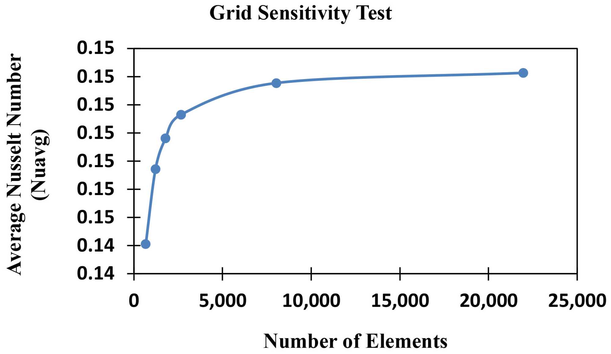 Grid independence test was performed with different number of elements and the average Nusselt number was assumed to be the test variable. The results are shown in Table 1 and Figure 4.