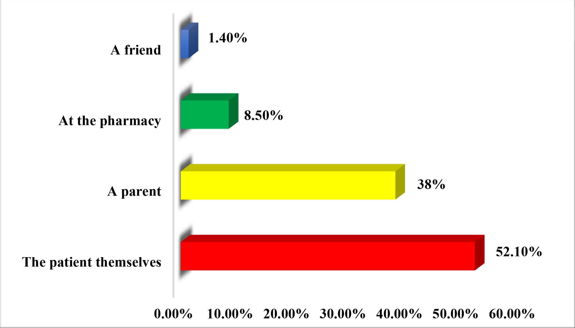 The distribution of patients according to their self-medication initiative is shown in Figure 1. More than half of the patients took the initiative themselves.