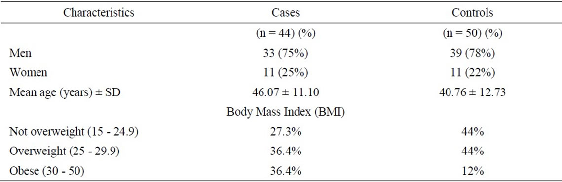 Ninety four patients with chronic hepatitis B (CHB) were enrolled in our study. Then, based on the existence of non-alcoholic fatty liver disease (NAFLD), subjects were divided into two groups: forty-four patients with NAFLD in the case group and fifty patients without NAFLD in the control group. NAFLD was confirmed by liver biopsy, which was available and done for all patients. HBV genotype was D in all patients [14]. Demographic and biochemical characteristics of the patients are shown in Tables 1 and 2.