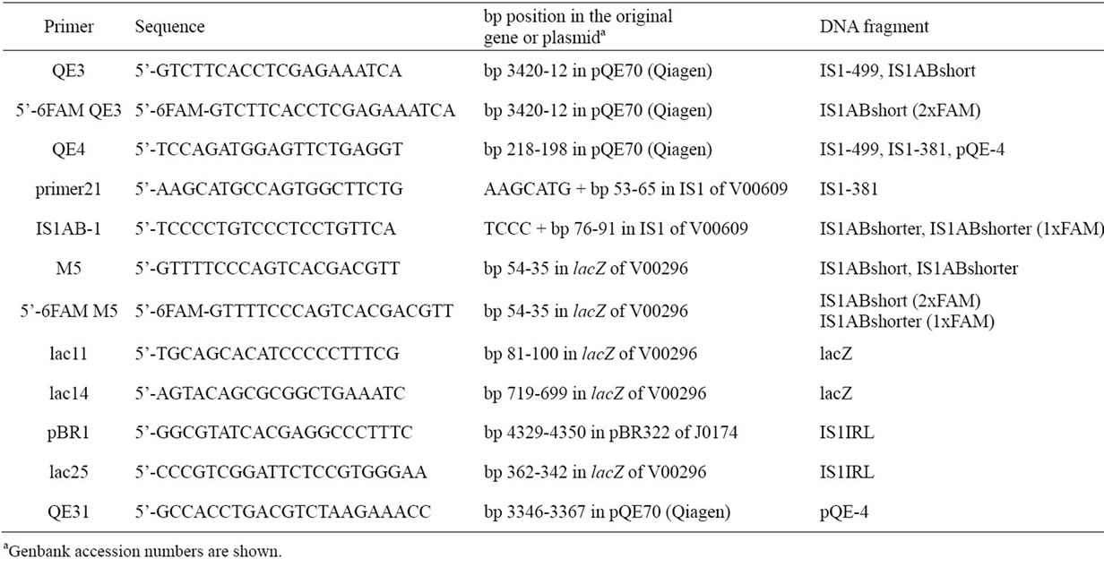 Table 1. PCR primers used for the preparation of DNA fragments.