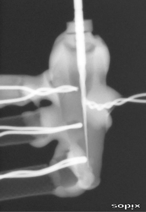 Figure 1. Each test specimen was constructed by placing three thermocouples inside the root canal; in addition, one thermocouple was attached to the surface of the root canal.