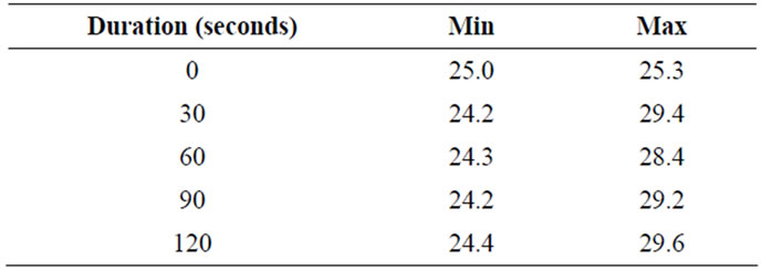 An earlier study [6] revealed that laser cavitation resulted in the most effective removal of the smear layer and debris; hence, in the present study we observed the temperature changes produced by a laser at 2 W. The mean temperatures were from 25.2˚C to 27.1˚C and the temperature ranged from 25.0˚C to 29.6˚C. A rise in temperature within this range will not cause pathological damage to periodontal tissues.