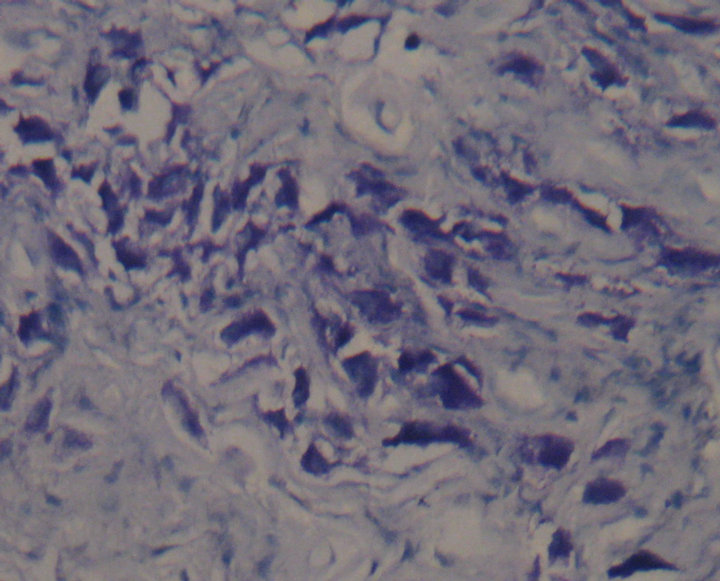 Figure 2. Mast cells stained with Toluidine blue (×400).