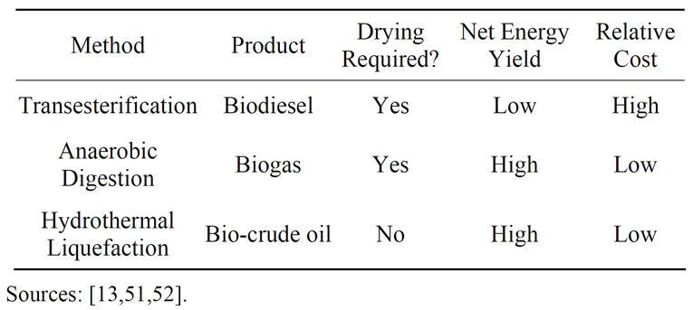 Many algae-based operations aim to produce bio-energy in their processes; three different methods of algal biomass conversion were considered for this system (see Table 3).