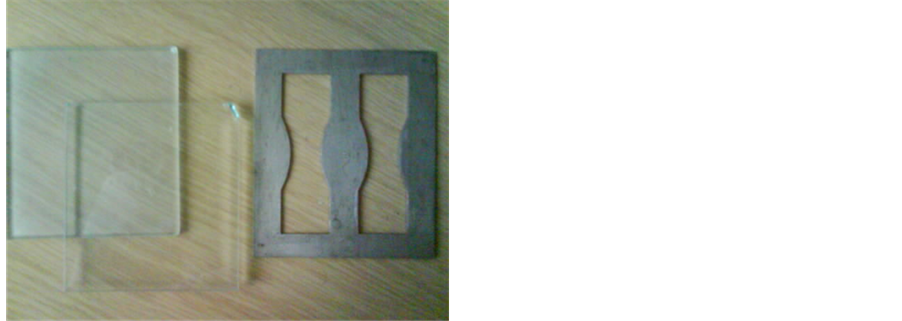 Figure 2. Two glass panels (left) and the template (right) used to produce the tear strength pieces.