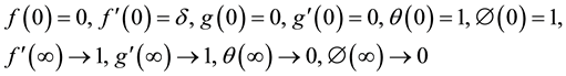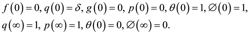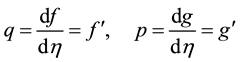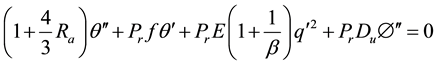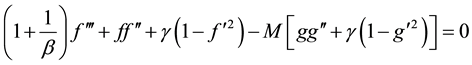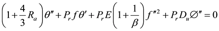 By using Equation (17) in the Equations (9)-(12) and Equation (16), we get the following ordinary differential equations in dimensionless form